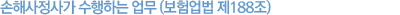 ¼ÕÇØº¸Çè»ç¾÷ÀÚ´Â ¼ÕÇØ»çÁ¤»ç¸¦ °í¿ëÇÏ¿© º¸Çè»ç°í·Î ÀÎÇÑ ¼ÕÇØ¾× ¹× º¸Çè±ÝÀÇ »çÁ¤(ÀÌÇÏ "¼ÕÇØ»çÁ¤" À̶óÇÑ´Ù.)¿¡ °üÇÑ ¾÷¹«¸¦ ´ã´çÇϰÔÇϰųª ¼ÕÇØ»çÁ¤À» ¾÷À¸·Î ÇÏ´Â ÀÚ¸¦ ¼±ÀÓÇÏ¿© ´çÇØ ¾÷¹«¸¦ À§Å¹ÇÏ¿©¾ß ÇÑ´Ù. |