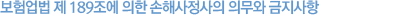 ¨ì ±× ¹Û¿¡ °øÁ¤ÇÑ ¼ÕÇØ»çÁ¤¾÷¹«ÀÇ ¼öÇàÀ» ÀúÇØÇÏ´Â ÇàÀ§·Î¼ ´ëÅë·É·ÉÀÌ Á¤ÇÏ´Â ÇàÀ§º¸Çèȸ»ç´Â ¼ÕÇØ»çÁ¤»çÀÇ ¾÷¹«¼öÇà¿¡ ¿µÇâÀ» ¹ÌÄ¡´Â ÇàÀ§¸¦ ÇÏ¿©¼´Â ¾Æ´Ï µÇ¸ç, Á¤´çÇÑ »çÀ¯ ¾øÀÌ ½ÅºÐ»ó ºÒÀÌÀÍÀ» ÁÖ´Â ÇàÀ§¸¦ ÇÏ¿©¼´Â ¾Æ´Ï µÈ´Ù. |